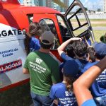 O sargento Batista, do Corpo de Bombeiros Militar de Alagoas (CBMAL), ficou responsável por apresentar as características da aeronave. O militar mostrou equipamentos, explicou a função de cada membro da equipe e, ainda, falou sobre como as vítimas são transportadas dentro do Falcão 05.