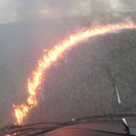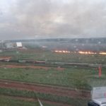 A equipe do Ciopaer foi acionada às 15hs pela administração da plataforma multimodal da ferrovia, para auxiliar no combate a um incêndio, ocasionado por uma descarga elétrica de um raio, na mata que fica localizada entre o Centro de Distribuição de Combustíveis e o Terminal de Cargas da Ferrovia Norte Sul.