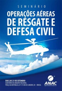 A ANAC realizou o Seminário de “Operações de Resgate Aéreo e Defesa Civil” na cidade do Rio de Janeiro, nos dias 20 e 21 de setembro de 2010, no auditório do Arquivo Nacional. O objetivo de divulgar as melhores práticas em operações de resgate aeromédico foi plenamente alcançado.