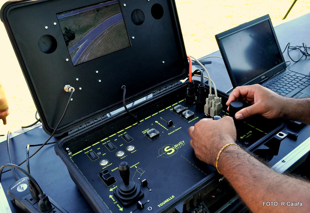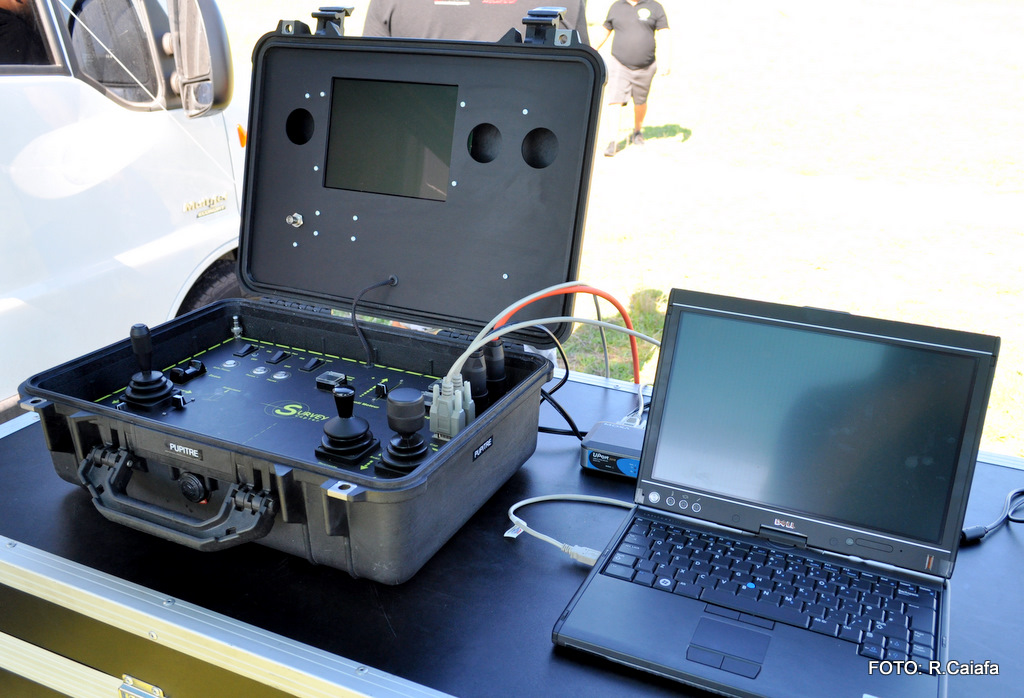 Para operar os VANT Heli, o sistema faz uso de um veículo furgão chassi longo transformado em central de comando e controle e equipado com tecnologia no estado da arte em sistemas de monitoramento e vigilância, como a integração de computadores de alto desempenho, telas LCD a cores, barras USB multifuncionais, leitores de mídias digitais como cartões de memória, teclados dotados de track ball e mini manche, estes usados para a operação de câmera Speed Dome destacável, normalmente colocada no teto do veículo e usada para acompanhar o VANT em voo ou reconhecer o perímetro, além de conexões para sistemas diversos de comunicações e transferência de dados. O furgão possui sistemas independentes de ar condicionado, gerenciamento de energia elétrica e de suporte de vida.