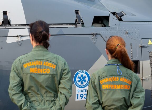 Nos uniformes foi colocada identificação “Operações Aéreas” e descrição da atividade exercida pelo profissional, “Médico” ou “Enfermeiro“, em cores destacadas, posicionadas nas costas, ofertando segurança e padronização aos operadores de suporte médico.