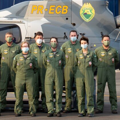 Paraná – Nesta semana os médicos e enfermeiros que compõem as tripulações aeromédicas do Batalhão de Polícia Militar de Operações Aéreas (BPMOA) receberam equipamentos de proteção individual adquiridos pela Prefeitura de Curitiba para utilização nas missões de resgates e remoções aeromédicas.