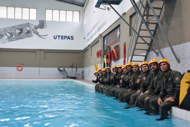 Na segunda fase, foram aplicadas as técnicas de saída da aeronave nas condições diurna e noturna, preparando os tripulantes para uma real emergência na água após um acidente.
