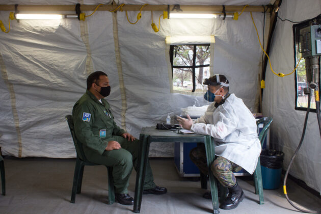 “Nós, profissionais de saúde militares, podemos atuar em Missões de Paz, nas quais o risco biológico é alto e o sistema de saúde é precário. Por exemplo, áreas de malária, febre amarela, cólera, Ebola e, atualmente, casos de COVID-19. Também podemos prestar assistência a refugiados vulneráveis com doenças endêmicas e levar apoio humanitário em geral, principalmente no atendimento ao Sistema de Cooperação das Forças Aéreas Americanas (SICOFAA)”, ressalta o Major Médico Pascale, responsável pela elaboração do Plano de Biossegurança do Exercício.