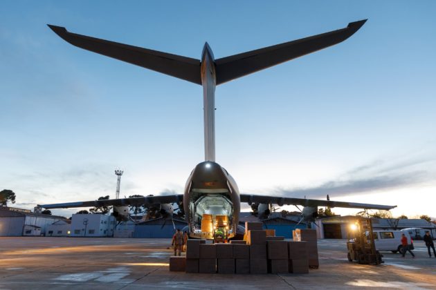 Espanha – Um avião Airbus A400M realizou um transporte de lote de máscaras necessárias para o sistema de saúde espanhol de Toulouse a Madri. A aeronave, conhecida como MSN56 e operada por uma tripulação da Airbus, decolou no dia 23 de março de 2020 da sede da Airbus em Toulouse, pousando na Base Aérea Getafe (Madri) para descarregar e entregar o lote de máscaras ao Ministério da Defesa Espanhol.