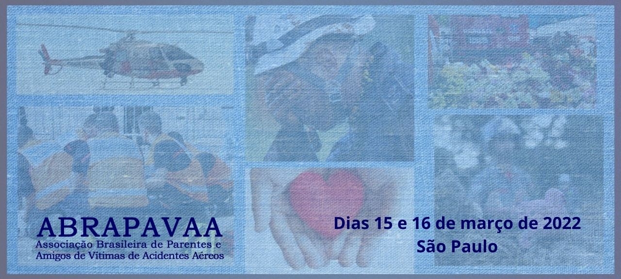A Associação Brasileira de Parentes e Amigos de Vítimas de Acidentes Aéreos (ABRAPAVAA) realizará o 1º Congresso ABRAPAVAA nos dias 15 e 16 de março de 2022, das 8h às 18:30h, no Hotel Meliá Ibirapuera, zona sul de São Paulo. O tema do evento será “Gerenciamento de Crise e a Assistência aos Familiares de Vítimas em Eventos Traumáticos”.