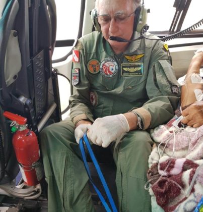 Equipe aeromédica do GRAESP transporta paciente infartado de Abaetetuba para Belém, PA. Foto: Ascom GRAESP.