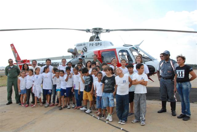 Em relação ao passeio no hangar, o secretário pontua que quase todas as crianças estão conhecendo um helicóptero pela primeira vez. “É importante também que os alunos conheçam todos os meios utilizados pela Polícia Militar”, apontou. De acordo com a professora da oficina, Nilza de Almeida Bino, o assunto já é abordado em sala de aula, a atividade externa é para mostrar na prática o trabalho da Radiopatrulha Aérea. Na ocasião, os dispositivos do helicóptero foram apresentados pelo 1º sargento Levi Leiva Pereira, e pelo atual comandante da aeronave, o 1º tenente Alexandre da Silva Costa.