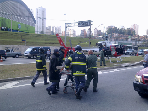 O homem que ficou ferido quando seu carro invadiu o canteiro central da Marginal Pinheiros, na altura da Ponte Estaiada Octavio Frias de Oliveira, na Zona Sul de São Paulo, foi socorrido pelo helicóptero Águia da Polícia Militar. O acidente aconteceu pouco antes das 15h desta quinta-feira (10) na pista sentido Interlagos. O motorista teve o braço esquerdo fraturado.
