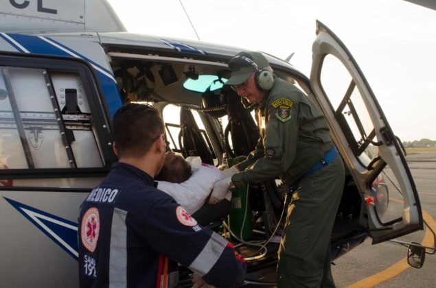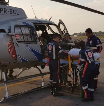 Um helicóptero do GRAESP com equipe aeromédica foi para o local e em 16 minutos o paciente estava no Hospital Saúde da Mulher (HSM), em Belém, onde foi internado na UTI. “Esse transporte demonstra a importância da aeronave de asa rotativa voando na Amazônia. Agimos rápido e demos todo o suporte ao paciente que terá atendimento especializado”, disse o médico de voo, José Guataçara.