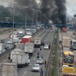Ônibus são incendiados em via expressa do Rio de Janeiro nesta terça (Foto: Reprodução / TV Globo)