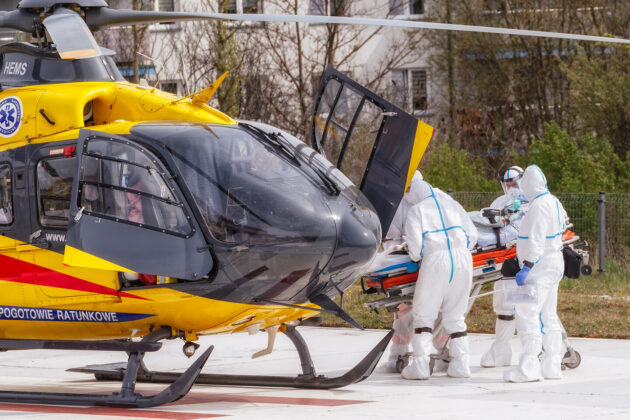 Durante a alta temporada de COVID-19, a resposta de emergência de Varsóvia foi fortemente sobrecarregada. Isso causou um número crescente de missões HEMS na área da cidade. Certa manhã, fomos despachados para um acidente de moto que ocorreu em uma rua movimentada no centro da cidade. Sabíamos imediatamente que esta seria uma missão muito desafiadora – pousar, manter a área do helicóptero segura e gerenciar uma multidão que está tentando ajudar, mas pode na verdade ser um obstáculo. Chegamos ao nosso ponto de destino GPS e começamos a procurar uma cena de acidente. Vimos uma motocicleta acidentada e algumas pessoas ao redor deitadas de bruços.