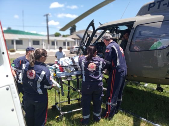 EÁguia 04 e SAMU transportam paciente em estado grave de Campo Belo do Sul para Lages, SC. Foto: Divulgação.