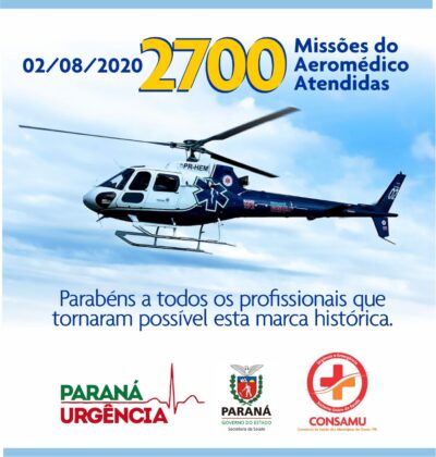 Paraná – Com início das operações em janeiro de 2014, o helicóptero Saúde 02 do Consórcio de Saúde dos Municípios do Oeste do Paraná (CONSAMU), com sede em Cascavel, realizou no dia 02 de agosto a sua missão aeromédica de número 2.700.