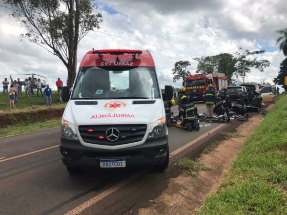 Paraná – Uma colisão frontal envolvendo duas caminhonetes S10 com placas de Cianorte-PR, resultou em duas vítimas fatais e outras duas gravemente feridas. O acidente ocorreu na tarde de terça-feira (22), na PR-082, entre as cidades de Cianorte e Indianópolis. Um terceiro automóvel (Pegeout 307) também se envolveu no acidente.