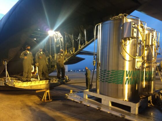 Além dos transportes de pacientes, duas aeronaves C-130 Hércules da FAB decolaram da Base Aérea de São Paulo, em Guarulhos (SP), na quinta-feira (14), com mais de 18 toneladas de cilindros de oxigênio líquido, que serão utilizados por hospitais no atendimento a pacientes da COVID-19, no estado do Amazonas.