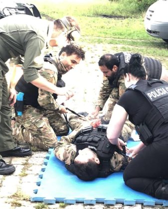 Durante o treinamento, os policiais puderam trocar experiências sobre o assunto e aprimorar ainda mais as técnicas e táticas usadas em eventos críticos com policiais feridos em combate.