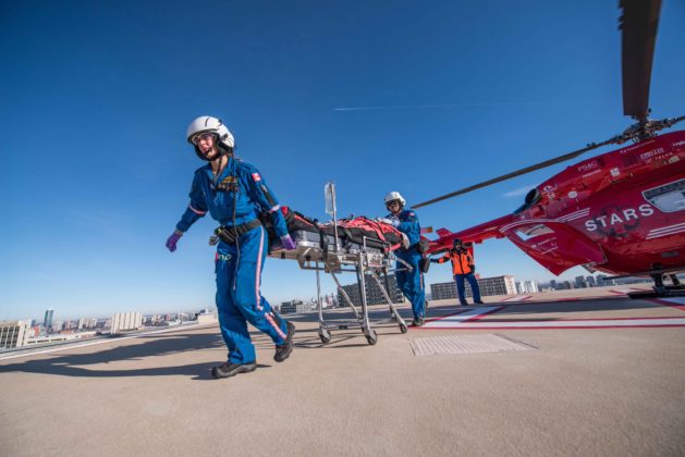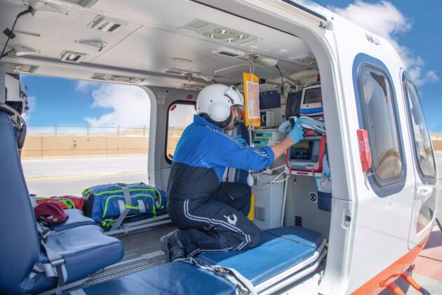 “Ambos os tipos de helicópteros são equipados com kit aeromédico de última geração”, disse Baker. “Todos os helicópteros H145 e AW139 também são configurados para operações com óculos de visão noturna [NVG]. Os helicópteros também contam com sistemas avançados de navegação e segurança, incluindo um sistema de reconhecimento de terreno para helicópteros, sistema de alerta de tráfego, radar meteorológico, sistema de proteção contra colisões com fios e diversos sistemas integrados para missões de resgate médico.”