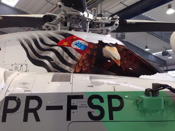 Os helicópteros deverão possuir pintura, grafismos, cores, símbolos, brasões representativos do Estado, da Secretaria da Segurança e Defesa Social e do GTA, semelhante ao helicóptero Acauã 01.