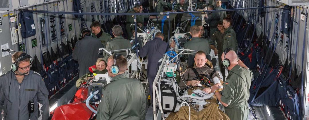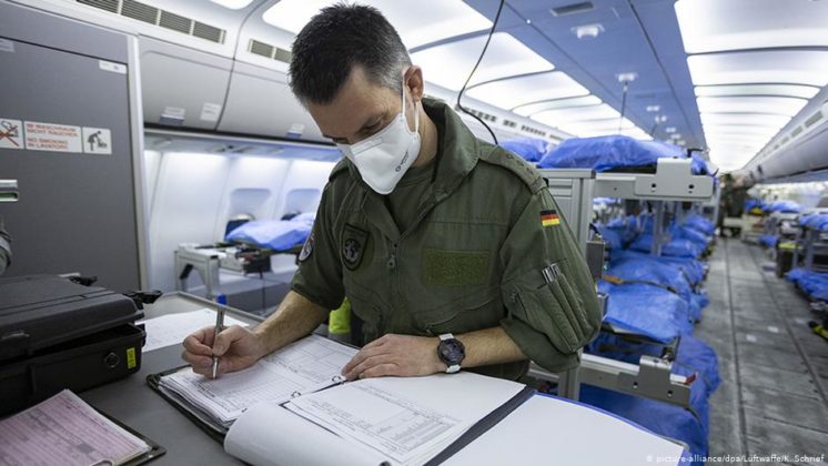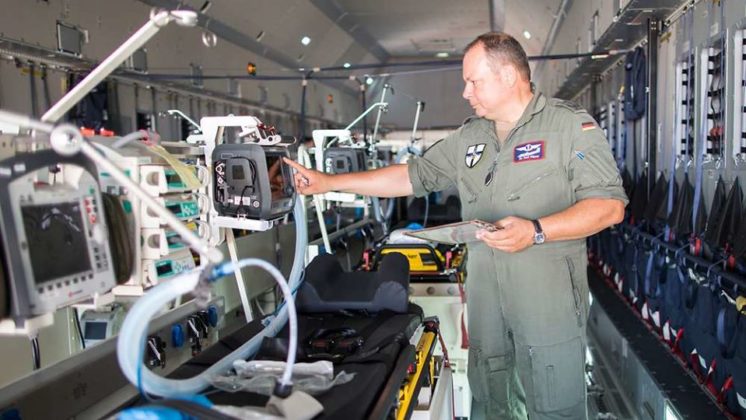 Para essas missões, a Bundeswehr está preparada para transportar pacientes em verdadeira UTIs aéreas. Para esse fim, um Airbus A310MedEvac equipado como uma “unidade aérea de terapia intensiva” voou duas vezes para a Itália e uma aeronave de transporte Airbus A400M MedEvac, também preparada para operações de evacuação aeromédica, voou para a França. Os pacientes foram distribuídos em clínicas civis e em hospitais das Forças Armadas, em Coblença, Ulm, Hamburgo e Westerstede.