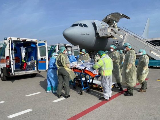 Alemanha – Aviões de grande porte configurados MedEvac (Medical Evacuation) da Luftwaffe (Força Aérea Alemã) e que fazem parte da Bundeswehr (Forças Armadas Unificadas da Alemanha) transportaram pacientes com COVID-19 do norte da Itália e da França para a Alemanha nos últimos dias.