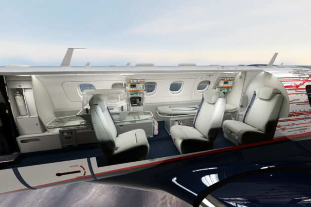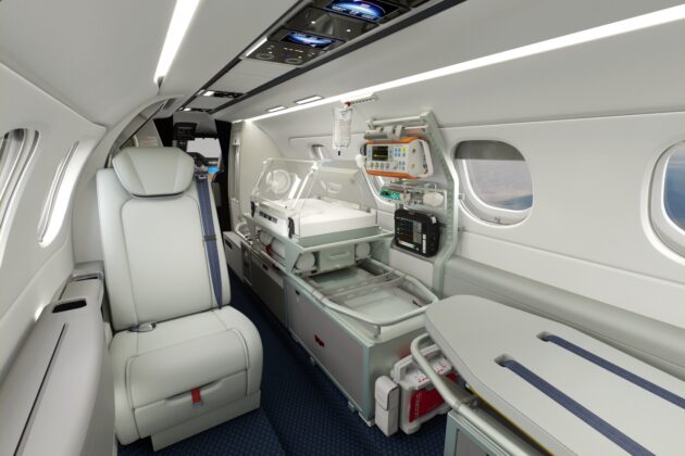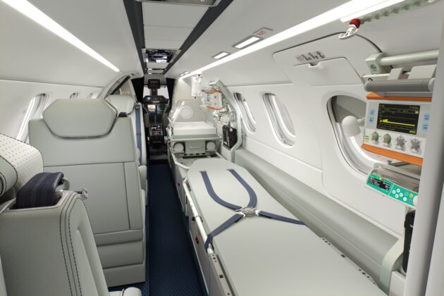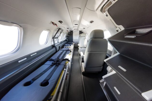 Além disso, foi projetado para ser configurado de forma rápida e fácil, atendendo as diversas necessidades dos profissionais de saúde e dos pacientes. A conversão entre um interior executivo e um aeromédico acontece em menos de 5 horas.