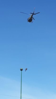 No local, a vítima recebeu os primeiros atendimentos por uma equipe do Corpo de Bombeiros Militar e, como o local era de difícil acesso, as equipes optaram pelo lançamento de um operador aerotático do Águia 4 através do rapel. A vítima foi retirada com uso do triângulo de resgate, tendo em vista que a vítima apresentava apenas escoriações, estando consciente e orientada.