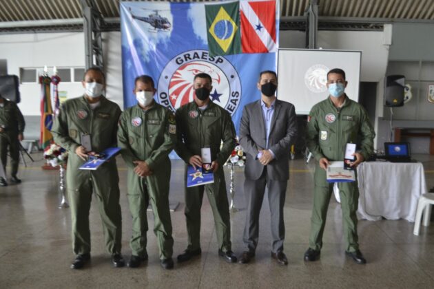 Pará – Na véspera de comemorar 16 anos de criação, o Grupamento Aéreo de Segurança Pública (GRAESP) concluiu mais um ciclo de requalificação dos profissionais que atuam no Grupamento e entregou certificados e homenagens. O evento aconteceu na sexta-feira (18), no hangar do Grupamento, em Belém.