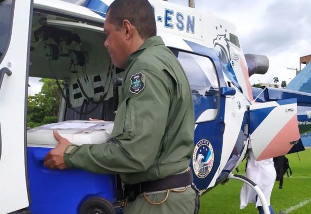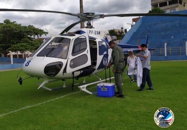 Espírito Santo – Na terça-feira (14), a tripulação do helicóptero Harpia 8 do Núcleo de Operações e Transporte Aéreo (NOTAer) da Casa Militar do Espirito Santo esteve em Colatina, noroeste do estado do Espirito Santo, transportando uma equipe de captação de órgãos da Central Estadual de Transplantes.