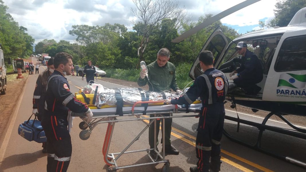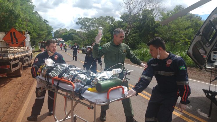 O paciente foi encaminhado de helicóptero ao Hospital de Campo Mourão para atendimento médico. A Polícia Rodoviária Federal fez a segurança do local e deu encaminhamento à ocorrência.