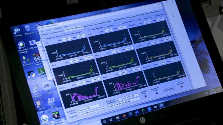 Isso foi feito liberando partículas em toda a cabine por seção, cada uma com 42 sensores representando outros passageiros que poderiam entrar em contato com elas. Cada teste liberou 180 milhões de partículas, número de partículas que seriam produzidas por milhares de tosses.
