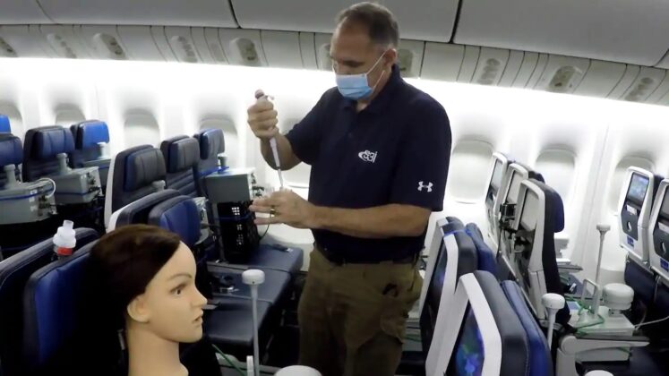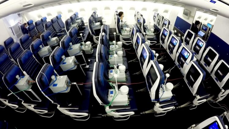 O estudo foi realizado a bordo dos jatos Boeing 777 e 767. Os pesquisadores colocaram um manequim, com e sem máscara em diferentes lugares dos aviões e liberaram partículas fluorescentes projetadas para imitar o vírus. A pesquisa realizada em seis meses envolveu 300 testes durante 38 horas de voo e 45 horas de testes em solo.