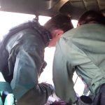 Após 3 minutos da decolagem, a equipe pousou o helicóptero na praia e deparou-se com um homem adulto desfalecido na faixa de areia e uma mulher correndo com uma criança no colo em direção à aeronave.