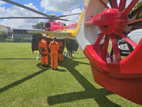A equipe do 5º Batalhão Bombeiro Militar (5º BBM) foi acionada para realizar o transporte do paciente, que recebeu atendimento inicial no pronto atendimento do município. As circunstâncias do acidente não foram informadas, mas seu estado de saúde era crítico.