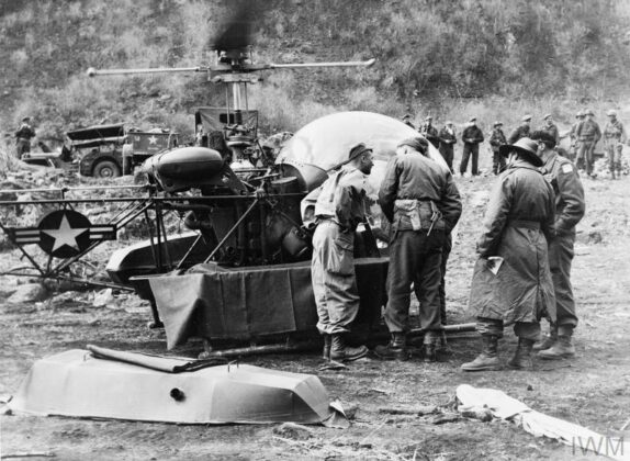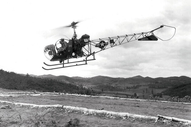 O primeiro registro de uso de um helicóptero americano em combate ocorreu em maio de 1944, quando um helicóptero do Exército resgatou quatro aviadores abatidos atrás das linhas inimigas na Birmânia.