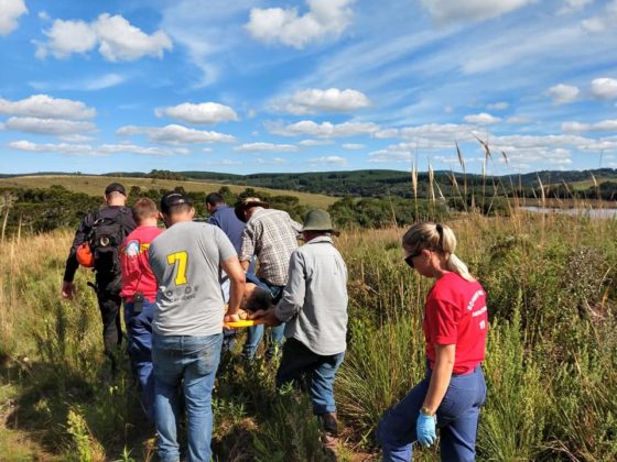 Santa Catarina – Na manhã de terça-feira (30), por volta das 10h00, o Corpo de Bombeiros de Lages, recebeu um chamado para atendimento de um homem de 65 anos, que apresentava fratura exposta na perna acompanhada de hemorragia, na localidade de Mangueirão, Fazenda Três Irmãos, município de Lages.