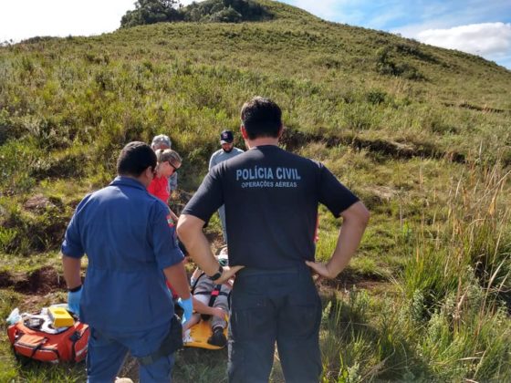 O atendimento foi realizado pela equipe integrada do SAER-FRON (Serviço Aeropolicial de Fronteira) da Polícia Civil e do SARA (Serviço de Atendimento e Resgate Aeromédico) da Secretaria de Saúde de Chapecó.