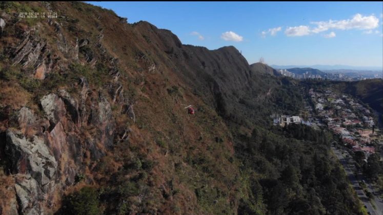 Batalhão de Operações Aéreas (BOA) do CBMMG realiza resgate de praticante de highline na Serra do Curral, MG. Foto: Divulgação