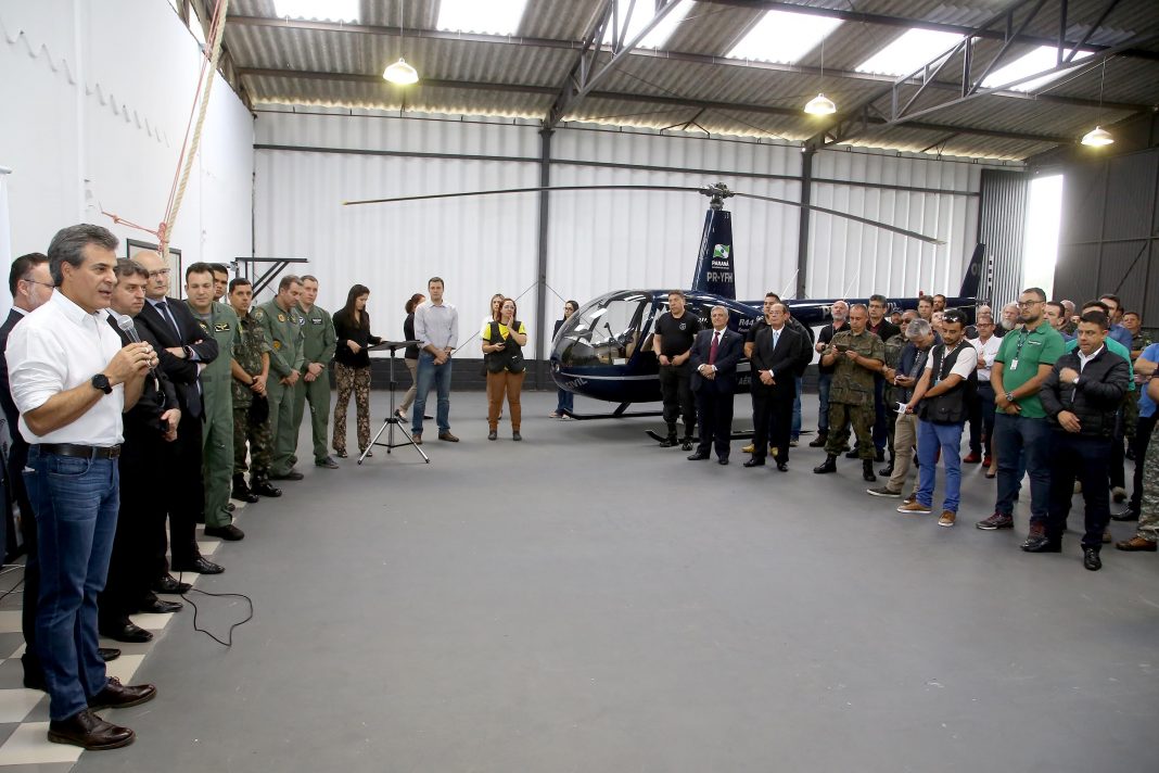Paraná – O governador Beto Richa anunciou nesta segunda-feira (4), no Palácio Iguaçu, em Curitiba, o início dos trabalhos do Grupamento de Operações Aéreas (GOA), criado por decreto no mês de junho e que integra a Divisão Estadual de Narcóticos (Denarc), da Polícia Civil do Paraná. A unidade começa a atuar com um helicóptero apreendido de criminosos e que foi cedido pela Justiça para a Secretaria de Estado da Segurança Pública e Administração Penitenciária. Agora, a aeronave será usada em ações de segurança.