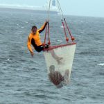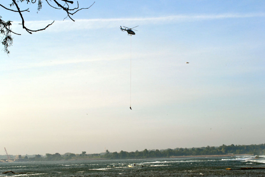 Aliando a técnica de resgate com sling e resgate em altura, o Cb Da Silva adequou uma cadeirinha de rapel e além de aquecer a vítima a vestiu com o equipamento para o transporte até a areia. Após os preparativos foi sinalizado para a aproximação da aeronave e após o difícil pairado sobre o bote (o bote não estava fundeado, e com isso ficava ao sabor da maré, dificultando a manutenção da posição da aeronave. Alie-se a isso a falta de referência que existe nas situações de mar semi-aberto.) foi lançado o cabo de salvamento e içado o TOMM e a vítima.