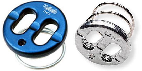 É outro mecanismo de frenagem utilizado na área esportiva para cordas dinâmicas com diâmetro entre 8 e 11 milímetros. Possui 1 ou 2 aberturas por onde a laçada da corda é passada, e esta fica presa ao mosquetão. Pode possuir uma mola, que tem a função de manter a placa a certa distância do mosquetão. Pode ser usado no rapel, mas o seu uso inicial foi para dar segurança nas escaladas.