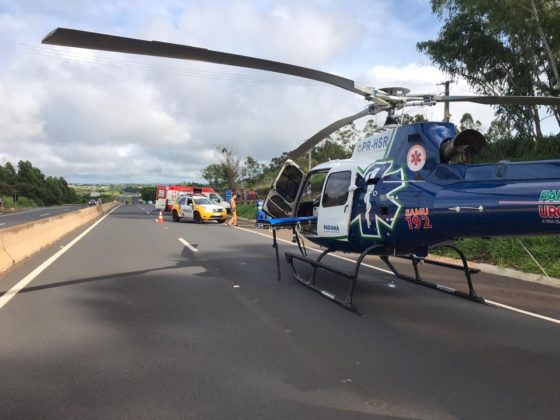 Vítima de grave acidente de motocicleta na PR-317 é resgatada pelo helicóptero do SAMU