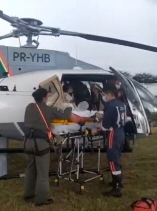 Na abordagem da equipe aeromédica, o motorista do ônibus foi avaliado com suspeita de traumatismo raquimedular, fratura no membro superior direito e trauma em tórax e abdome. Foi imobilizada a coluna cervical, imobilizando cabeça, colocado em prancha de trauma, sobre uma maca de montanha. Após o preparo do paciente, os profissionais, com apoio de populares, conseguiram suspender a maca do local do sinistro até a rodovia, por um terreno íngreme e escorregadio.