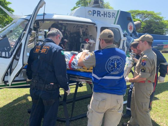 Após estabilização, a vítima foi transportada e acompanhada pelos operadores de suporte médico do helicóptero Saúde 10 do SAMU até o Hospital Santa Casa de Maringá.