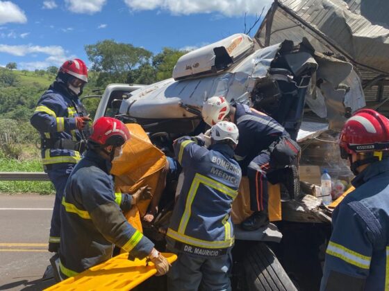 Paraná – Um grave acidente envolvendo dois caminhões na PR-323, em Tapejara, mobilizou equipes de resgate do Corpo de Bombeiros, do SAMU de Cianorte e equipe aeromédica da Base Maringá da Unidade Aérea Pública da Secretaria da Saúde do Paraná.