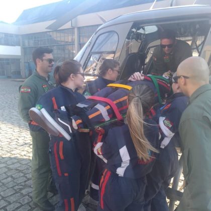 Na tarde terça-feira (04) realizaram a transferência aeromédica de um homem de 56 anos, da cidade de Quilombo para o HRO de Chapecó. A vítima sofreu amputação traumática completa de mão direita com grande perda de sangue.