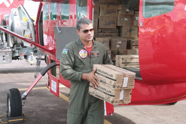 O avião Resgate 03, Grand Caravan EX (PT-PML), do Grupamento de Operações Aéreas (GOA) do Corpo de Bombeiros de Rondônia transportou um lote de 16.000 máscaras vindas de São Paulo e mais uma remessa de 35 mil máscaras de Manaus para Porto Velho. Outras 25 mil unidades do equipamento de proteção individual chegaram momentos depois, transportadas pelo avião da Força Aérea Brasileira.