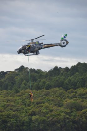 Na quinta-feira (28) e sexta-feira (29), em conformidade com o RBAC 90, houve treinamento dos Operadores de Suporte Médico (Médicos e Enfermeiros tripulantes) que atuam no resgate aeromédico do Estado do Paraná. Foram realizadas atividades de embarque e desembarque a baixa altura, infiltração por rapel e salto da aeronave (helocasting).