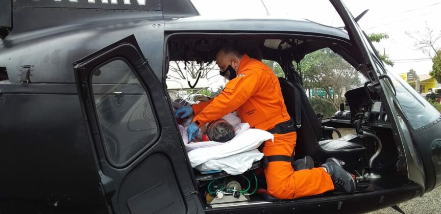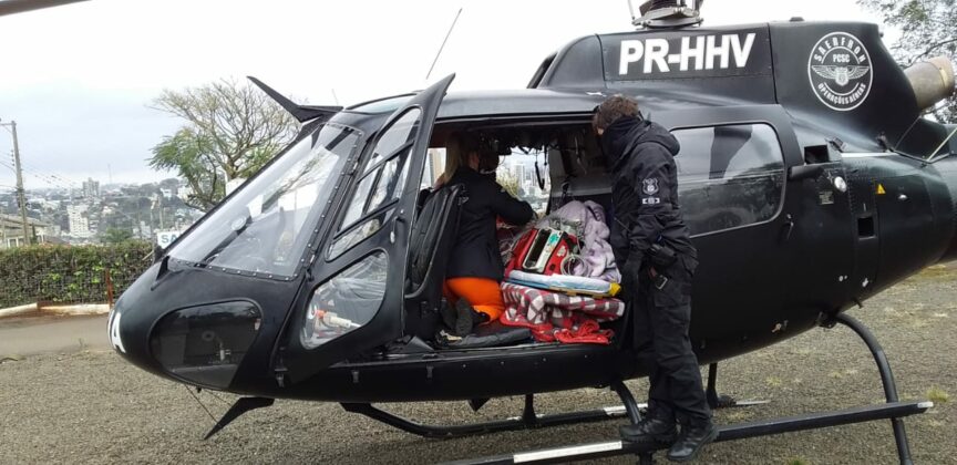 A paciente foi intubada, em ventilação artificial, e depois de estabilizada foi transferida de helicóptero para o HRO, em Chapecó.
