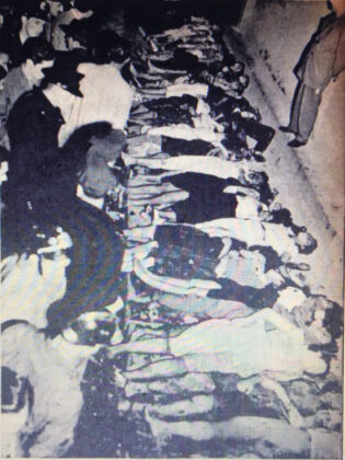 Paralelamente, os corpos também foram retirados. Somente da escada de madeira foram recolhidos 30 mortos e dezenas de feridos. Na calçada, em frente ao salão, uma cena dantesca: eram 46 corpos estendidos, enfileirados, com as roupas em frangalhos, peles dilaceradas, corpos fraturados, com faces que exprimiam o horror sofrido.